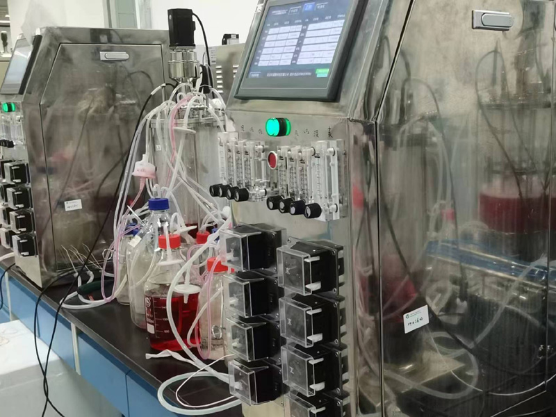 自动调节:热质量流量计调节与触摸屏显示表面空气,底部二氧化碳、氧气、氮气的流量 (动物细胞培养发酵罐标配)